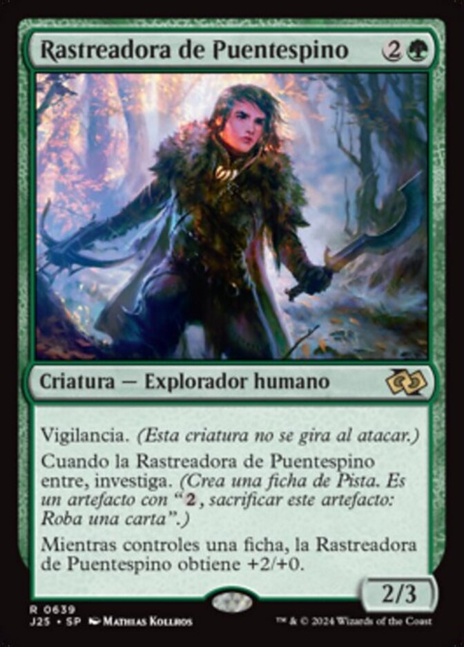 | Rules | Vigilance When Briarbridge Tracker enters the battlefield, investigate. (Create a colorless Clue artifact token with ", Sacrifice this artifact: Draw a card.") As long as you control a token, Briarbridge Tracker gets +2/+0. |
