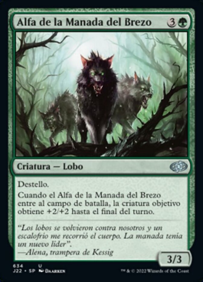 | Rules | Flash (You may cast this spell any time you could cast an instant.) When Briarpack Alpha enters the battlefield, target creature gets +2/+2 until end of turn. |