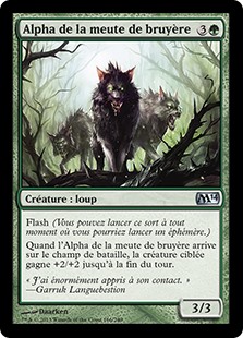 | Rules | Flash (You may cast this spell any time you could cast an instant.) When Briarpack Alpha enters the battlefield, target creature gets +2/+2 until end of turn. |