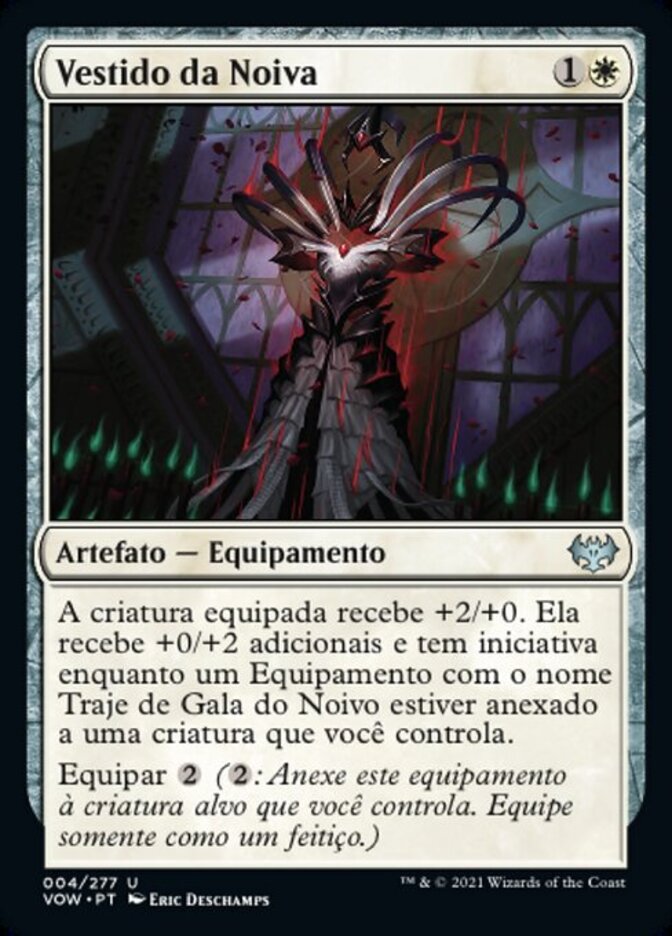 | Rules | Equipped creature gets +2/+0. It gets an additional +0/+2 and has first strike as long as an Equipment named Groom's Finery is attached to a creature you control. Equip (: Attach to target creature you control. Equip only as a sorcery.) |