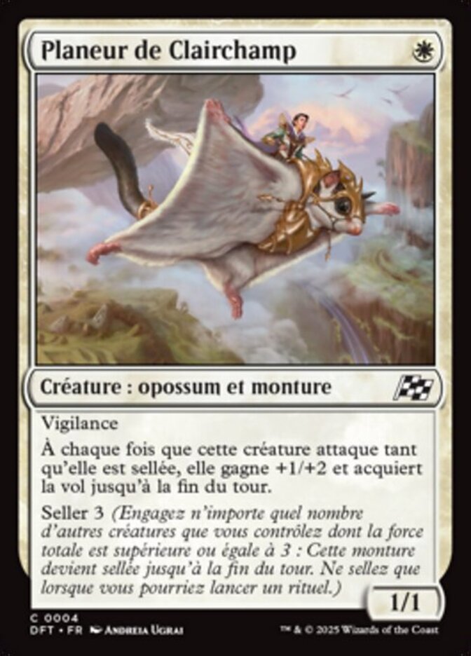| Rules | Vigilance Whenever this creature attacks while saddled, it gets +1/+2 and gains flying until end of turn. Saddle 3 (Tap any number of other creatures you control with total power 3 or more: This Mount becomes saddled until end of turn. Saddle only as a sorcery.) |