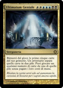 | Rules | Exile the top five cards of your library. An opponent separates those cards into two piles. You may play lands and cast spells from one of those piles. If you cast a spell this way, you cast it without paying its mana cost. |