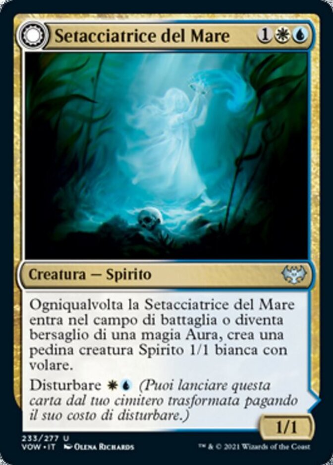 | Rules | Whenever Brine Comber enters the battlefield or becomes the target of an Aura spell, create a 1/1 white Spirit creature token with flying. Disturb (You may cast this card from your graveyard transformed for its disturb cost.) // Enchant creature Whenever Brinebound Gift enters the battlefield or enchanted creature becomes the target of an Aura spell, create a 1/1 white Spirit creature token with flying. If Brinebound Gift would be put into a graveyard from anywhere, exile it instead. |