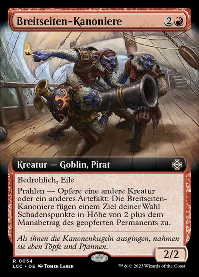 | Rules | Menace, haste Boast — Sacrifice another creature or artifact: Broadside Bombardiers deals damage equal to 2 plus the sacrificed permanent's mana value to any target. (Activate only if this creature attacked this turn and only once each turn.) |
