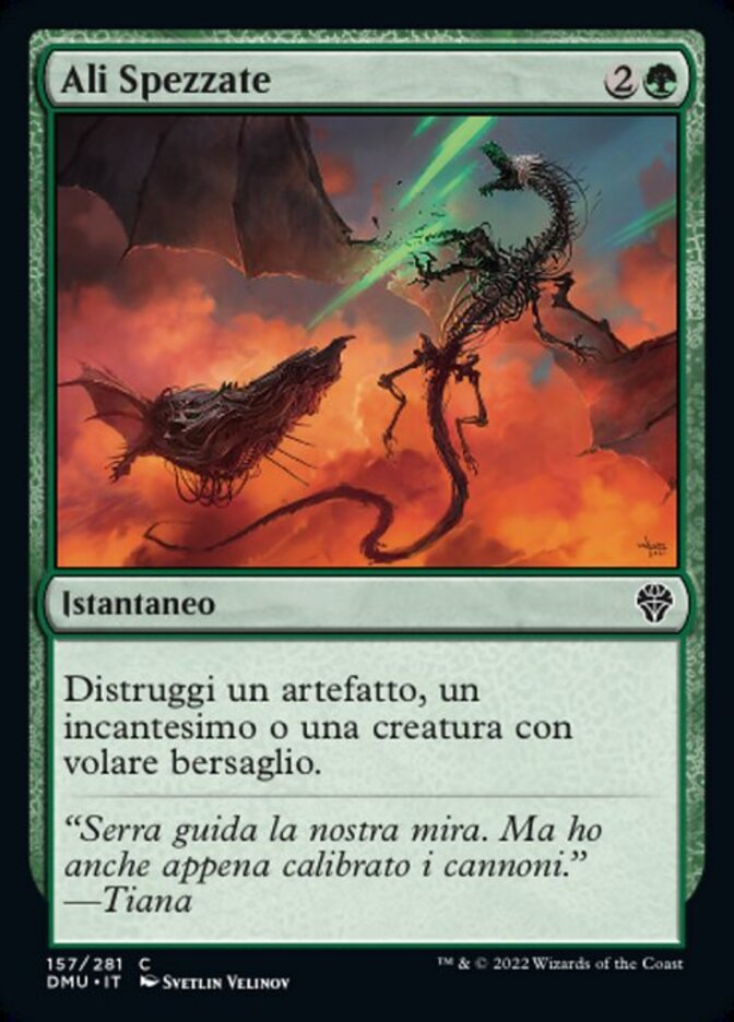 | Rules | Destroy target artifact, enchantment, or creature with flying. |