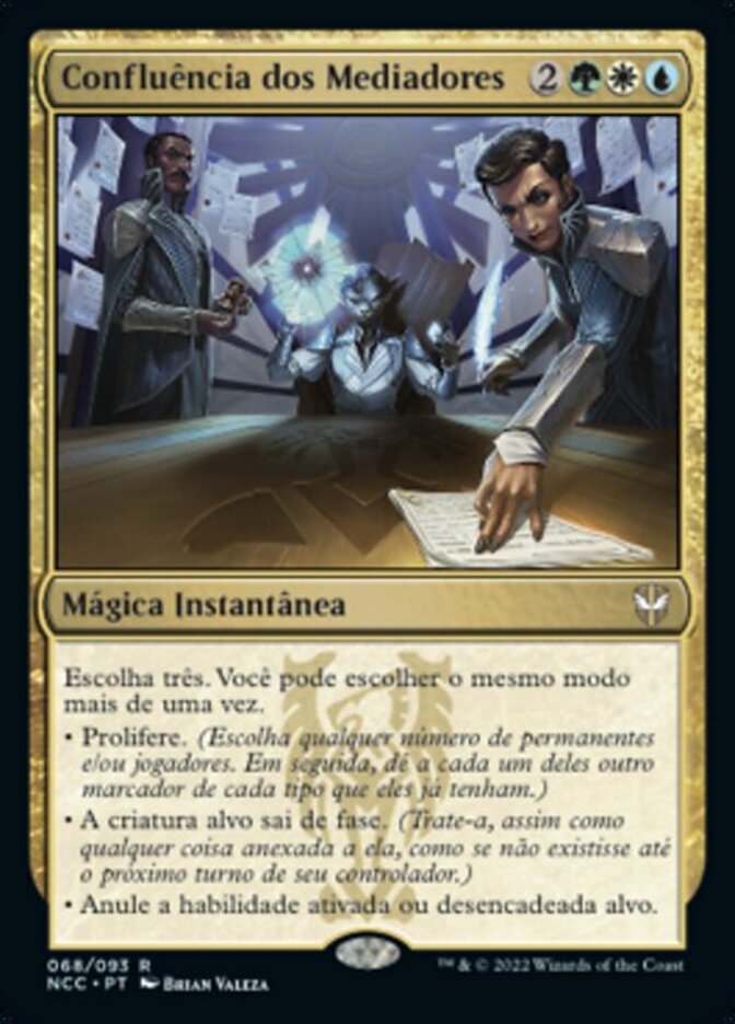 | Rules | Choose three. You may choose the same mode more than once. • Proliferate. (Choose any number of permanents and/or players, then give each another counter of each kind already there.) • Target creature phases out. (Treat it and anything attached to it as though they don't exist until your next turn.) • Counter target activated or triggered ability. |