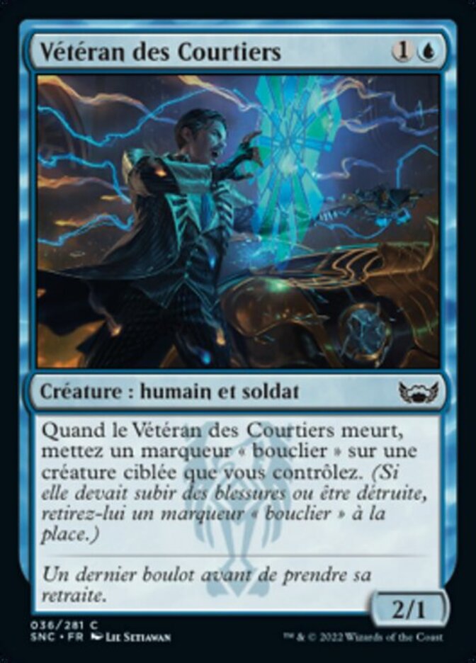 | Rules | When Brokers Veteran dies, put a shield counter on target creature you control. (If that creature would be dealt damage or destroyed, remove a shield counter from it instead.) |