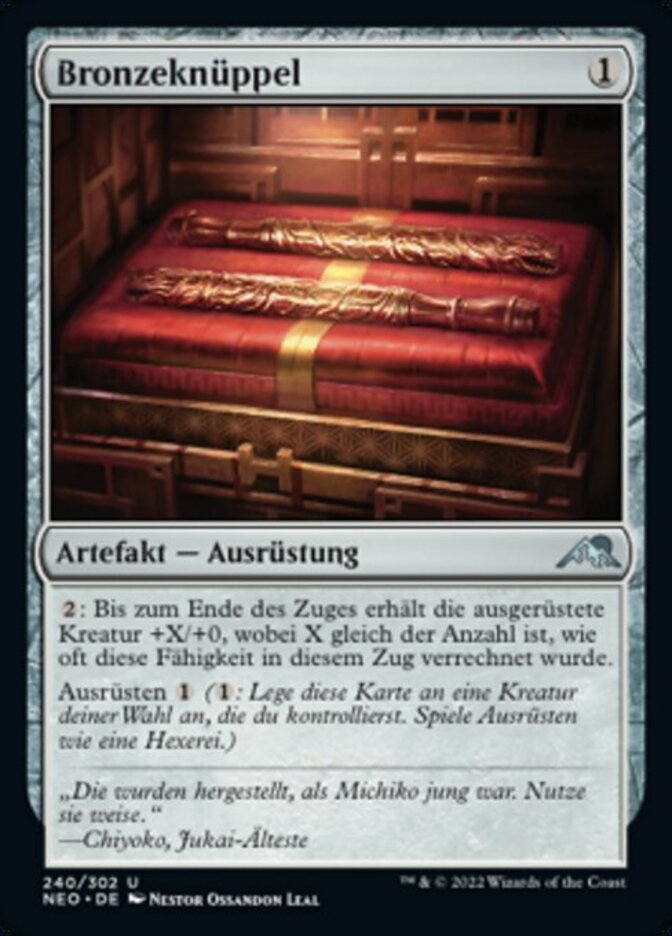 | Rules | : Until end of turn, equipped creature gets +X/+0, where X is the number of times this ability has resolved this turn. Equip (: Attach to target creature you control. Equip only as a sorcery.) |