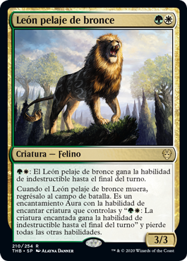 | Rules | : Bronzehide Lion gains indestructible until end of turn. When Bronzehide Lion dies, return it to the battlefield. It's an Aura enchantment with enchant creature you control and ": Enchanted creature gains indestructible until end of turn," and it loses all other abilities. |