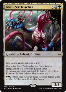 | Rules | Devoid (This card has no color.) When Brood Butcher enters the battlefield, create a 1/1 colorless Eldrazi Scion creature token. It has "Sacrifice this creature: Add ." , Sacrifice a creature: Target creature gets -2/-2 until end of turn. |