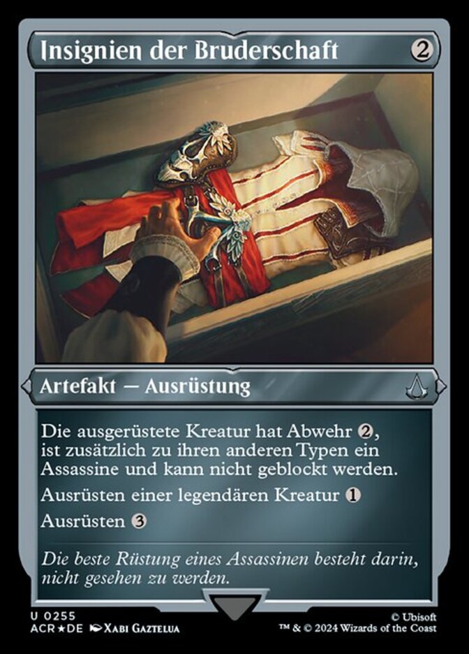 | Rules | Equipped creature has ward , is an Assassin in addition to its other types, and can't be blocked. Equip legendary creature Equip (: Attach to target creature you control. Equip only as a sorcery.) |