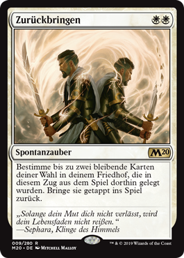 | Rules | Choose up to two target permanent cards in your graveyard that were put there from the battlefield this turn. Return them to the battlefield tapped. |