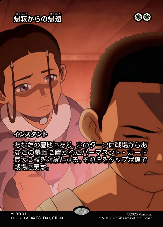 | Rules | Choose up to two target permanent cards in your graveyard that were put there from the battlefield this turn. Return them to the battlefield tapped. |