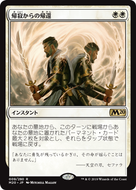 | Rules | Choose up to two target permanent cards in your graveyard that were put there from the battlefield this turn. Return them to the battlefield tapped. |