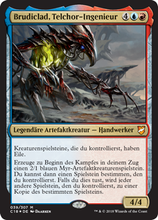 | Rules | Creature tokens you control have haste. At the beginning of combat on your turn, create a 2/1 blue Phyrexian Myr artifact creature token. Then you may choose a token you control. If you do, each other token you control becomes a copy of that token. |