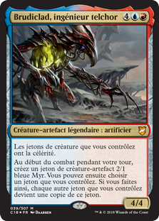 | Rules | Creature tokens you control have haste. At the beginning of combat on your turn, create a 2/1 blue Phyrexian Myr artifact creature token. Then you may choose a token you control. If you do, each other token you control becomes a copy of that token. |