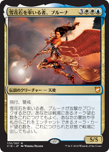 | Rules | Flying, vigilance Whenever Bruna, Light of Alabaster attacks or blocks, you may attach to it any number of Auras on the battlefield and you may put onto the battlefield attached to it any number of Aura cards that could enchant it from your graveyard and/or hand. |