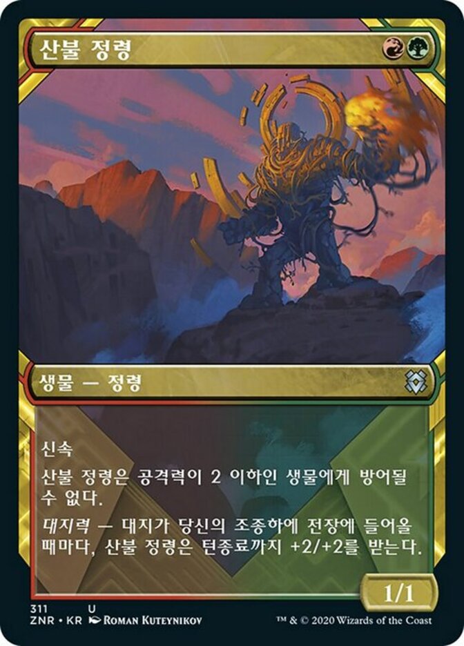 | Rules | Haste Brushfire Elemental can't be blocked by creatures with power 2 or less. Landfall — Whenever a land enters the battlefield under your control, Brushfire Elemental gets +2/+2 until end of turn. |