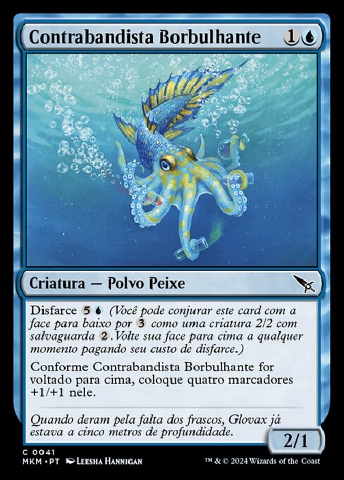 | Rules | Disguise (You may cast this card face down for as a 2/2 creature with ward . Turn it face up any time for its disguise cost.) As Bubble Smuggler is turned face up, put four +1/+1 counters on it. |