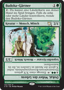 | Rules | : You may put a land card from your hand onto the battlefield. If you control ten or more lands, flip Budoka Gardener. // , : Create an X/X green Elemental creature token, where X is the number of lands you control. |