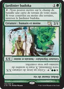 | Rules | : You may put a land card from your hand onto the battlefield. If you control ten or more lands, flip Budoka Gardener. // , : Create an X/X green Elemental creature token, where X is the number of lands you control. |