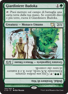 | Rules | : You may put a land card from your hand onto the battlefield. If you control ten or more lands, flip Budoka Gardener. // , : Create an X/X green Elemental creature token, where X is the number of lands you control. |