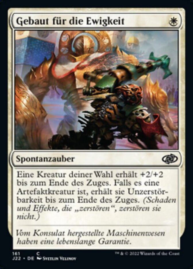 | Rules | Target creature gets +2/+2 until end of turn. If it's an artifact creature, it gains indestructible until end of turn. (Damage and effects that say "destroy" don't destroy it.) |