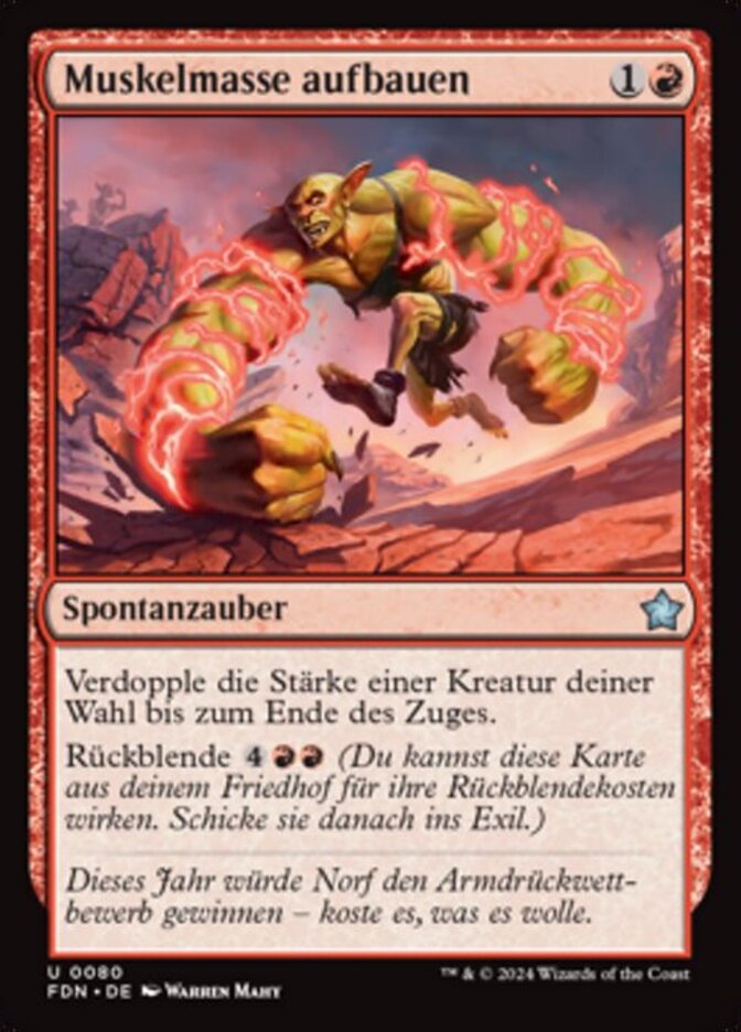 | Rules | Double target creature's power until end of turn. Flashback (You may cast this card from your graveyard for its flashback cost. Then exile it.) |