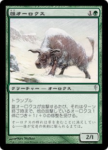 | Rules | Trample Whenever Bull Aurochs attacks, it gets +1/+0 until end of turn for each other attacking Aurochs. |