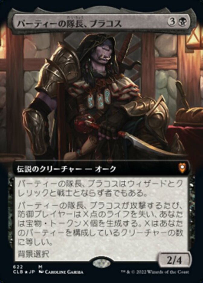 | Rules | Burakos, Party Leader is also a Cleric, Rogue, Warrior, and Wizard. Whenever Burakos, Party Leader attacks, defending player loses X life and you create X Treasure tokens, where X is the number of creatures in your party. Choose a Background (You can have a Background as a second commander.) |