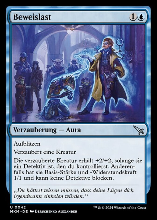 | Rules | Flash Enchant creature Enchanted creature gets +2/+2 as long as it's a Detective you control. Otherwise, it has base power and toughness 1/1 and can't block Detectives. |