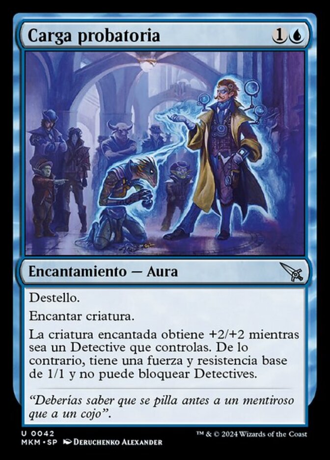 | Rules | Flash Enchant creature Enchanted creature gets +2/+2 as long as it's a Detective you control. Otherwise, it has base power and toughness 1/1 and can't block Detectives. |