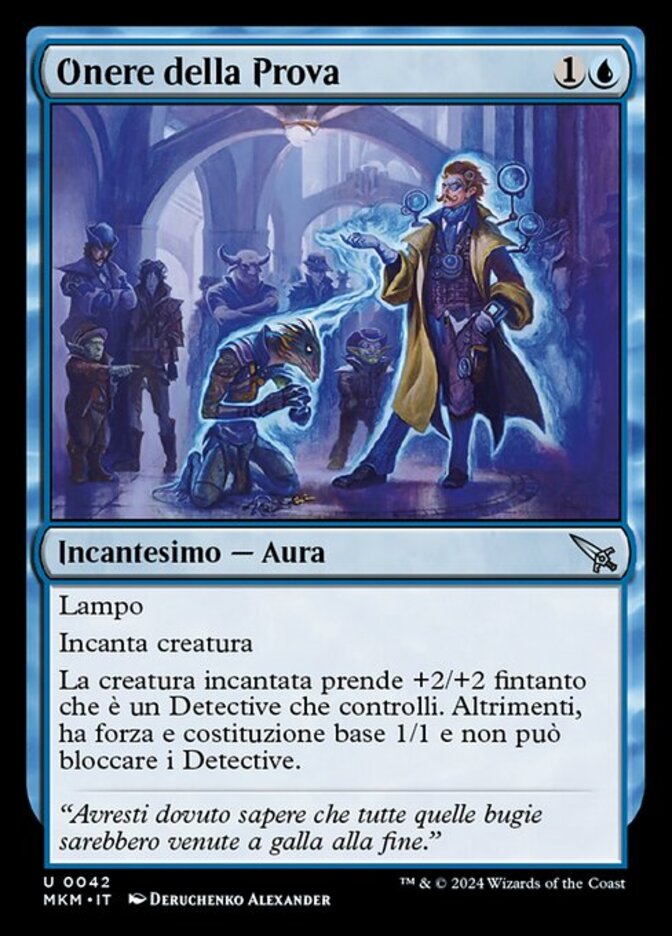 | Rules | Flash Enchant creature Enchanted creature gets +2/+2 as long as it's a Detective you control. Otherwise, it has base power and toughness 1/1 and can't block Detectives. |