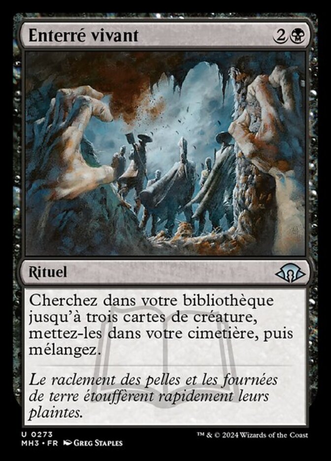 | Rules | Search your library for up to three creature cards, put them into your graveyard, then shuffle. |