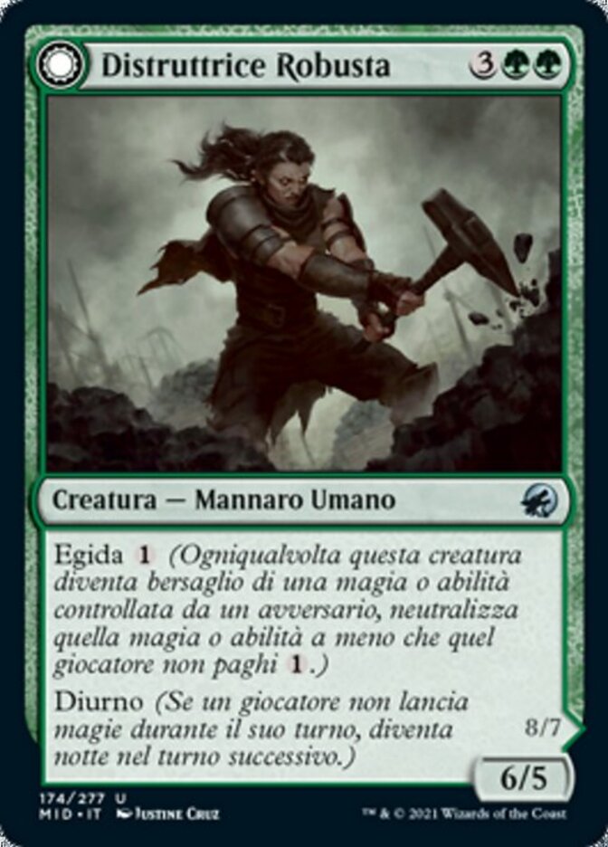| Rules | Ward (Whenever this creature becomes the target of a spell or ability an opponent controls, counter it unless that player pays .) Daybound (If a player casts no spells during their own turn, it becomes night next turn.) // Ward (Whenever this creature becomes the target of a spell or ability an opponent controls, counter it unless that player pays .) Nightbound (If a player casts at least two spells during their own turn, it becomes day next turn.) |