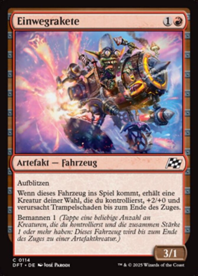 | Rules | Flash When this Vehicle enters, target creature you control gets +2/+0 and gains trample until end of turn. Crew 1 (Tap any number of creatures you control with total power 1 or more: This Vehicle becomes an artifact creature until end of turn.) |