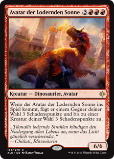 | Rules | When Burning Sun's Avatar enters the battlefield, it deals 3 damage to target opponent or planeswalker and 3 damage to up to one target creature. |