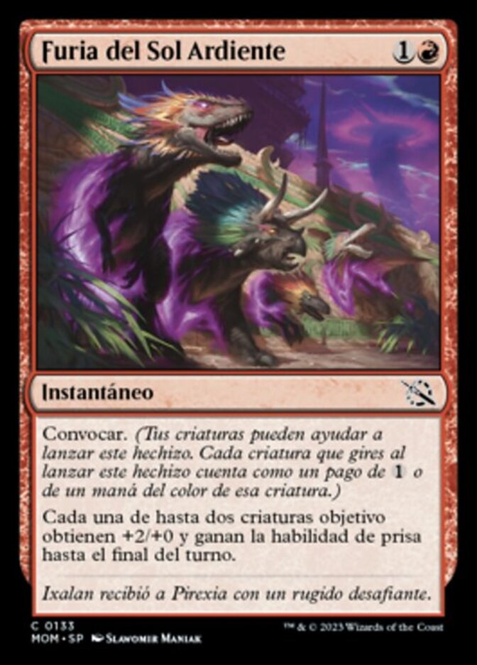 | Rules | Convoke (Your creatures can help cast this spell. Each creature you tap while casting this spell pays for 1 or one mana of that creature's color.) Up to two target creatures each get +2/+0 and gain haste until end of turn. |