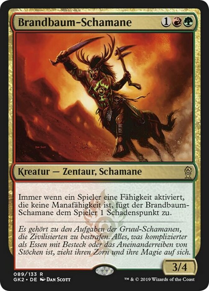 | Rules | Whenever a player activates an ability that isn't a mana ability, Burning-Tree Shaman deals 1 damage to that player. |