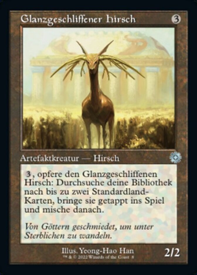 | Rules | , Sacrifice Burnished Hart: Search your library for up to two basic land cards, put them onto the battlefield tapped, then shuffle. |