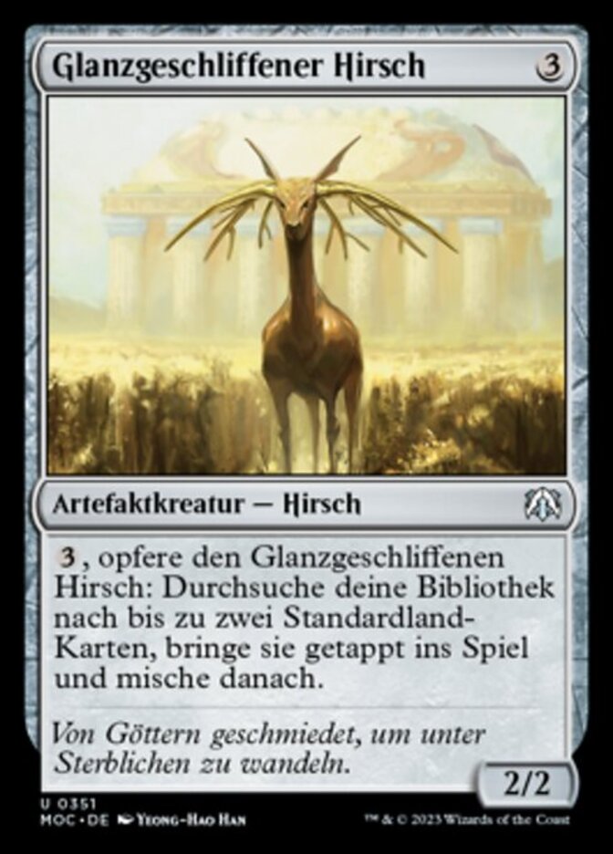 | Rules | , Sacrifice Burnished Hart: Search your library for up to two basic land cards, put them onto the battlefield tapped, then shuffle. |