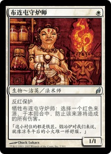 | Rules | Protection from red Sacrifice Burrenton Forge-Tender: Prevent all damage a red source of your choice would deal this turn. |