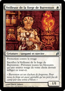 | Rules | Protection from red Sacrifice Burrenton Forge-Tender: Prevent all damage a red source of your choice would deal this turn. |
