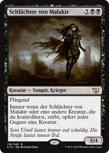 | Rules | Flying Whenever Butcher of Malakir or another creature you control dies, each opponent sacrifices a creature. |
