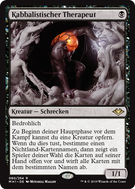 | Rules | Menace At the beginning of your precombat main phase, you may sacrifice a creature. When you do, choose a nonland card name, then target player reveals their hand and discards all cards with that name. |