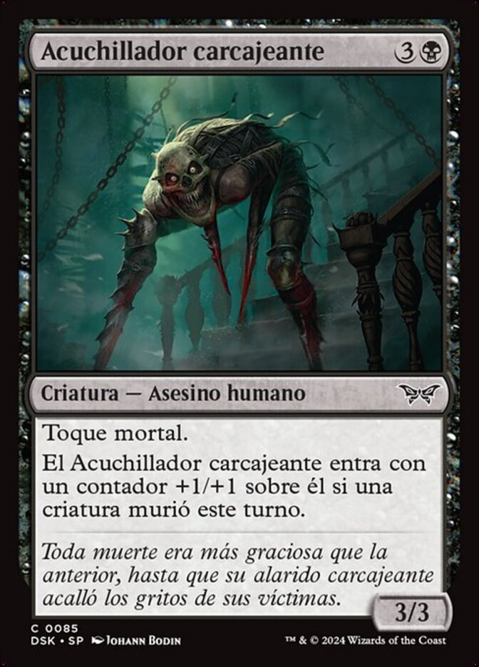 | Rules | Deathtouch Cackling Slasher enters with a +1/+1 counter on it if a creature died this turn. |