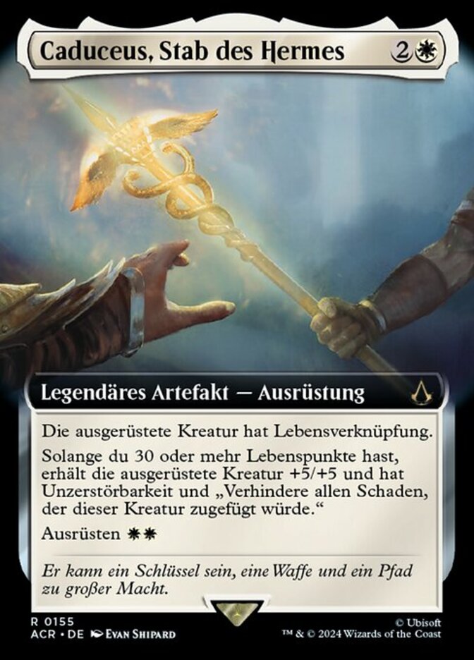 | Rules | Equipped creature has lifelink. As long as you have 30 or more life, equipped creature gets +5/+5 and has indestructible and "Prevent all damage that would be dealt to this creature." Equip |