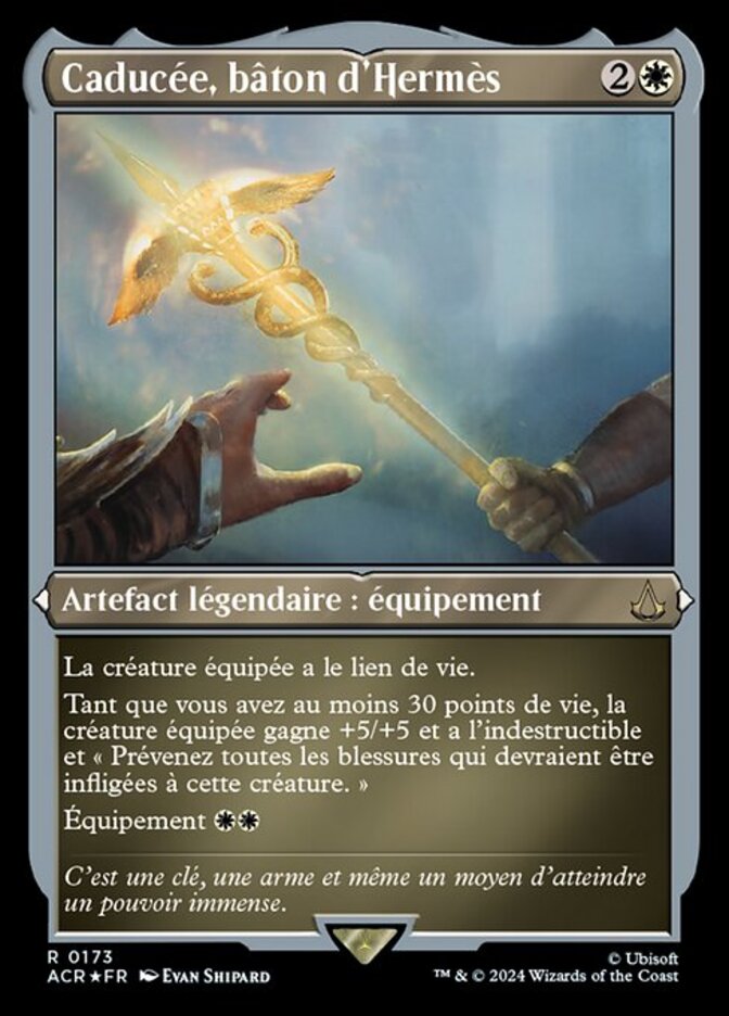 | Rules | Equipped creature has lifelink. As long as you have 30 or more life, equipped creature gets +5/+5 and has indestructible and "Prevent all damage that would be dealt to this creature." Equip |