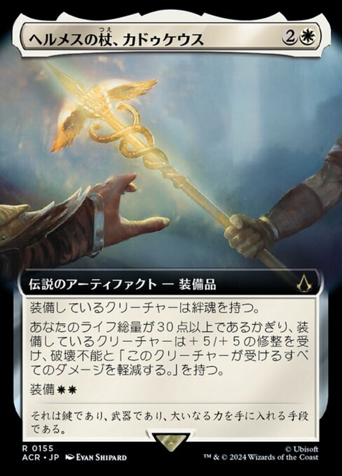 | Rules | Equipped creature has lifelink. As long as you have 30 or more life, equipped creature gets +5/+5 and has indestructible and "Prevent all damage that would be dealt to this creature." Equip |