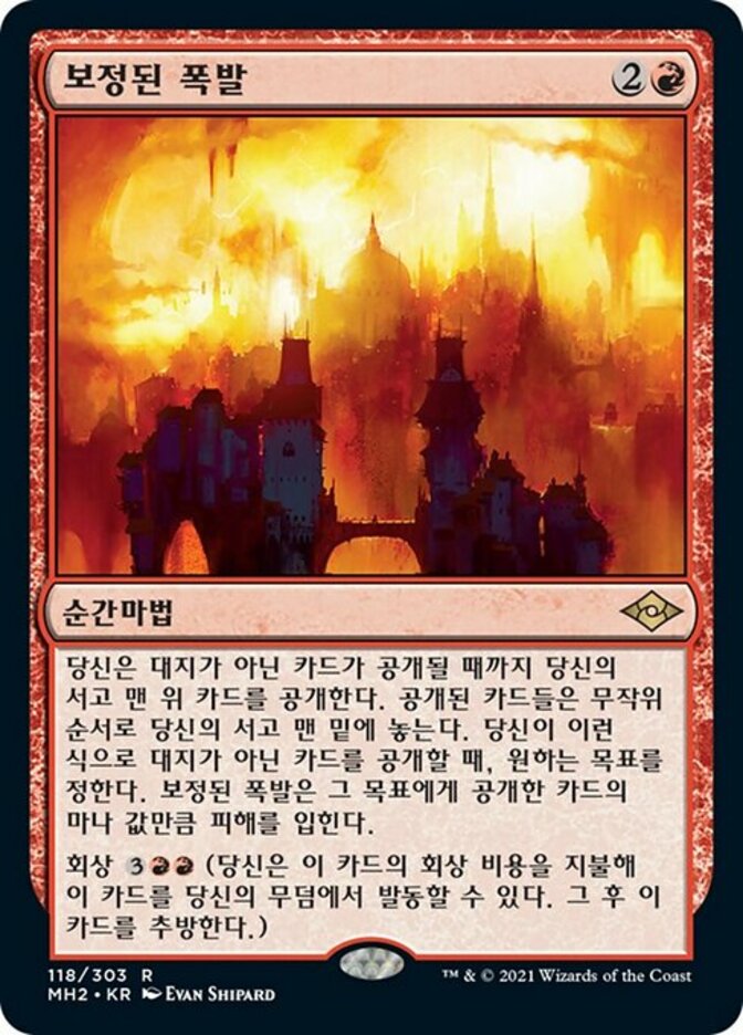 | Rules | Reveal cards from the top of your library until you reveal a nonland card. Put the revealed cards on the bottom of your library in a random order. When you reveal a nonland card this way, Calibrated Blast deals damage equal to that card's mana value to any target. Flashback (You may cast this card from your graveyard for its flashback cost. Then exile it.) |